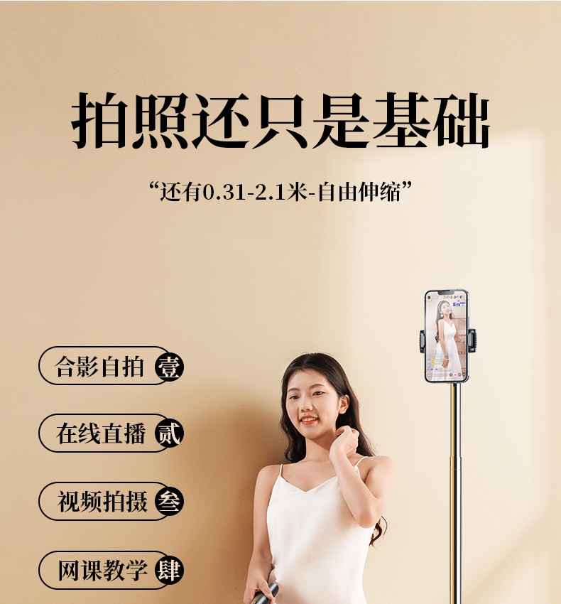 2.1米【一体式设计丨带三脚架丨遥控器丨平板支架】