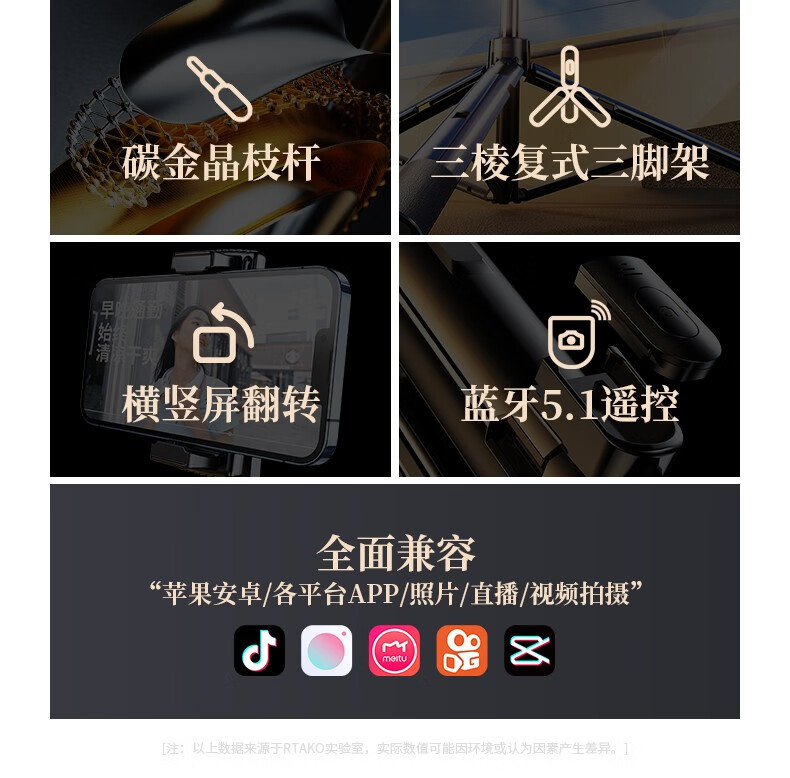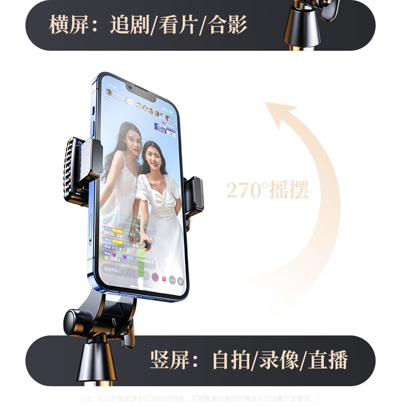 【2.1米才能拍全身】RTAKO防抖自拍杆手持直播抖音vlog神器便携桌面三脚支架多功能拍照摄苹果专 2.1米【一体式设计丨带三脚架丨遥控器丨平板支架】